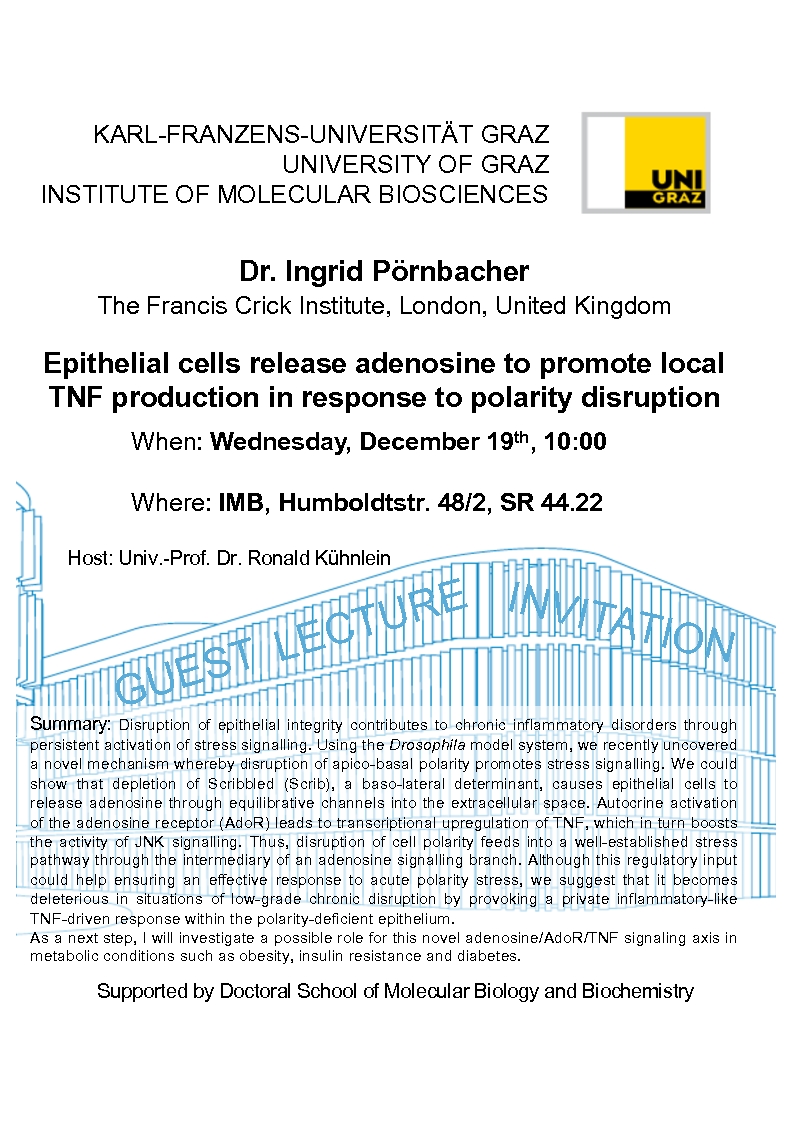 Universität Graz Naturwissenschaften Institut für Molekulare Biowissenschaften Neuigkeiten 19.12.2018: Guest lecture by Dr. Ingrid Pörnbacher
