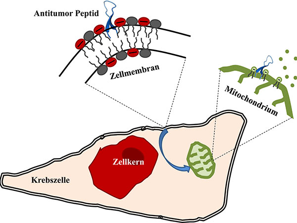 Eine entscheidende Rolle spielt dabei Lactoferricin, das in der Muttermilch vorkommt. Lactoferricin ist ein Molekül der angeborenen Immunabwehr und hat eine zusätzliche Eigenschaft, die im Einsatz gegen Tumorzellen zum Tragen kommt: Es ist ein positiv geladenes Peptid – ein verkürztes Protein – und wird deshalb von den negativ geladenen Lipiden, die sich an der Außenseite von Krebszellen befinden, angezogen.